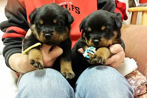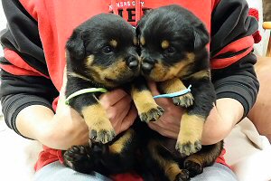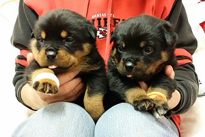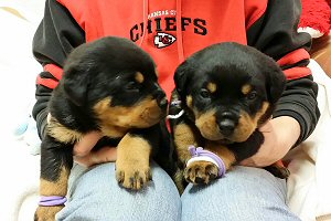Green Collar & Blue Collar Boy, 3 1/2 weeks old
